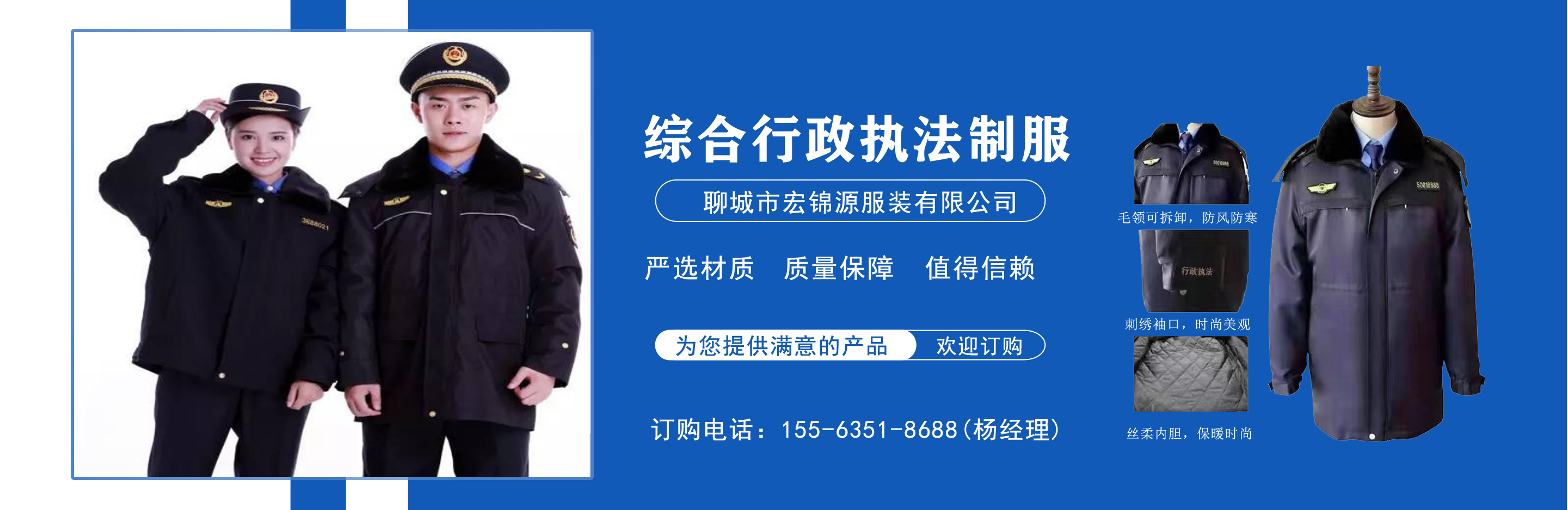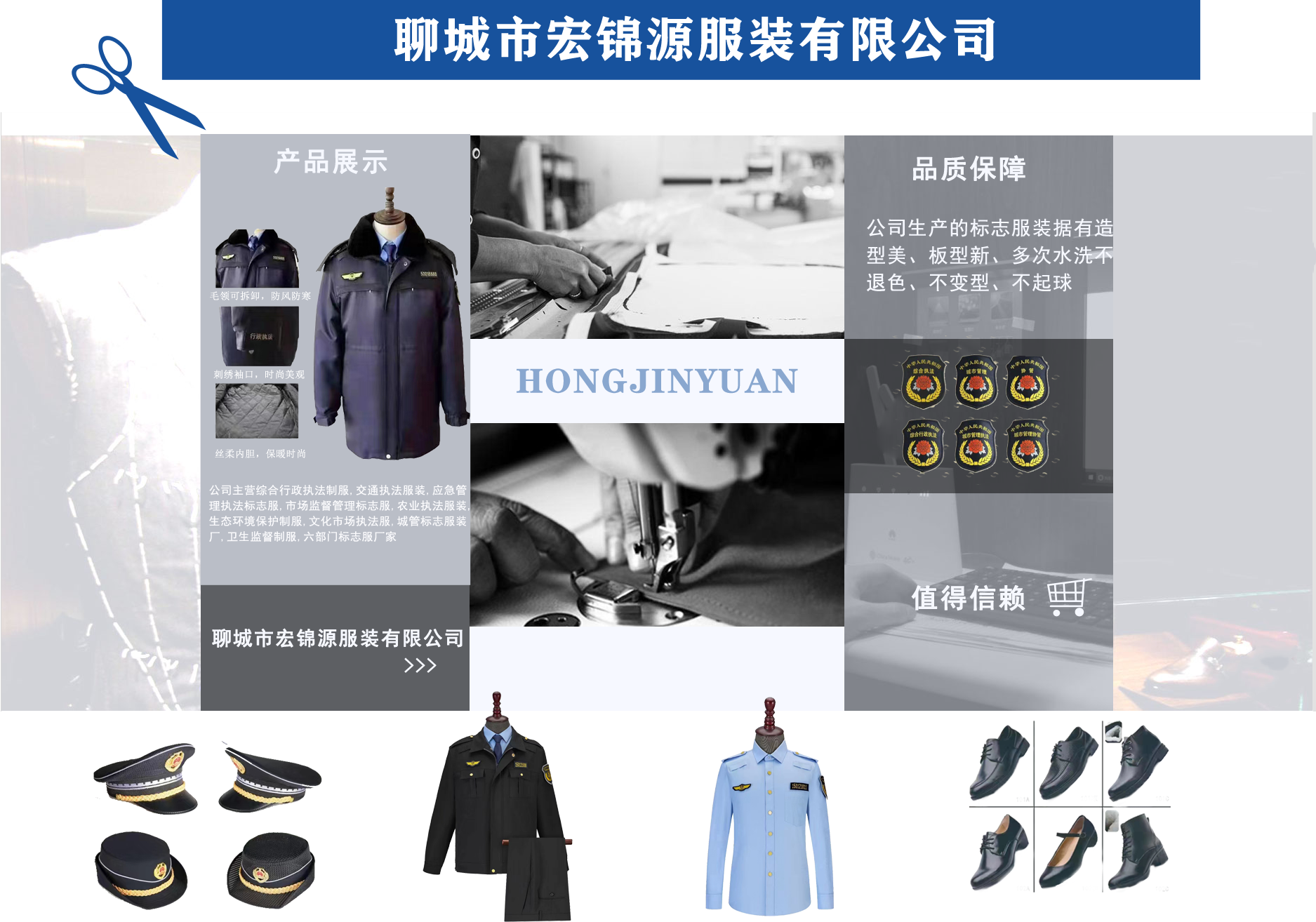 聊城市宏錦源服裝有限公司位于江北水城—山東聊城,地理位置優(yōu)越,交通便利。公司主營綜合行政執(zhí)法制服,交通執(zhí)法服裝,應急管理執(zhí)法標志服,市場監(jiān)督管理標志服,農業執(zhí)法服裝,生態(tài)環(huán)境保護制服,文化市場執(zhí)法服,城管標志服裝廠,衛生監(jiān)督制服,六部門標志服廠家等,值得信賴! 公司生產的標志服裝據有造型美、板型新、多次水洗不退色、不變型、不起泡?! 罢J真辦事,踏實做人”是宏錦源的企業精神,我們的宗旨是:“用服務與真誠來換取你的信任與支持,互惠互利,共創雙贏!”我公司愿與國內外各界同仁志士竭誠合作,共創未來企業目標:在已選定的服飾領域中,成為行業的卓越者?! 〗洜I理念:追求產品卓越,為用戶提供完美、高效的服務。...